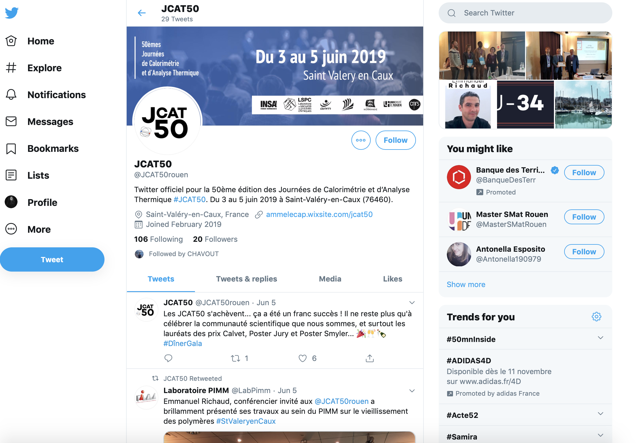 Lors de ce stage, j'ai dû travailler sur la communication évènementielle d'un congrès : JCAT50. 50 èmes journées de la calorimétrie et de l'analyse thermique.